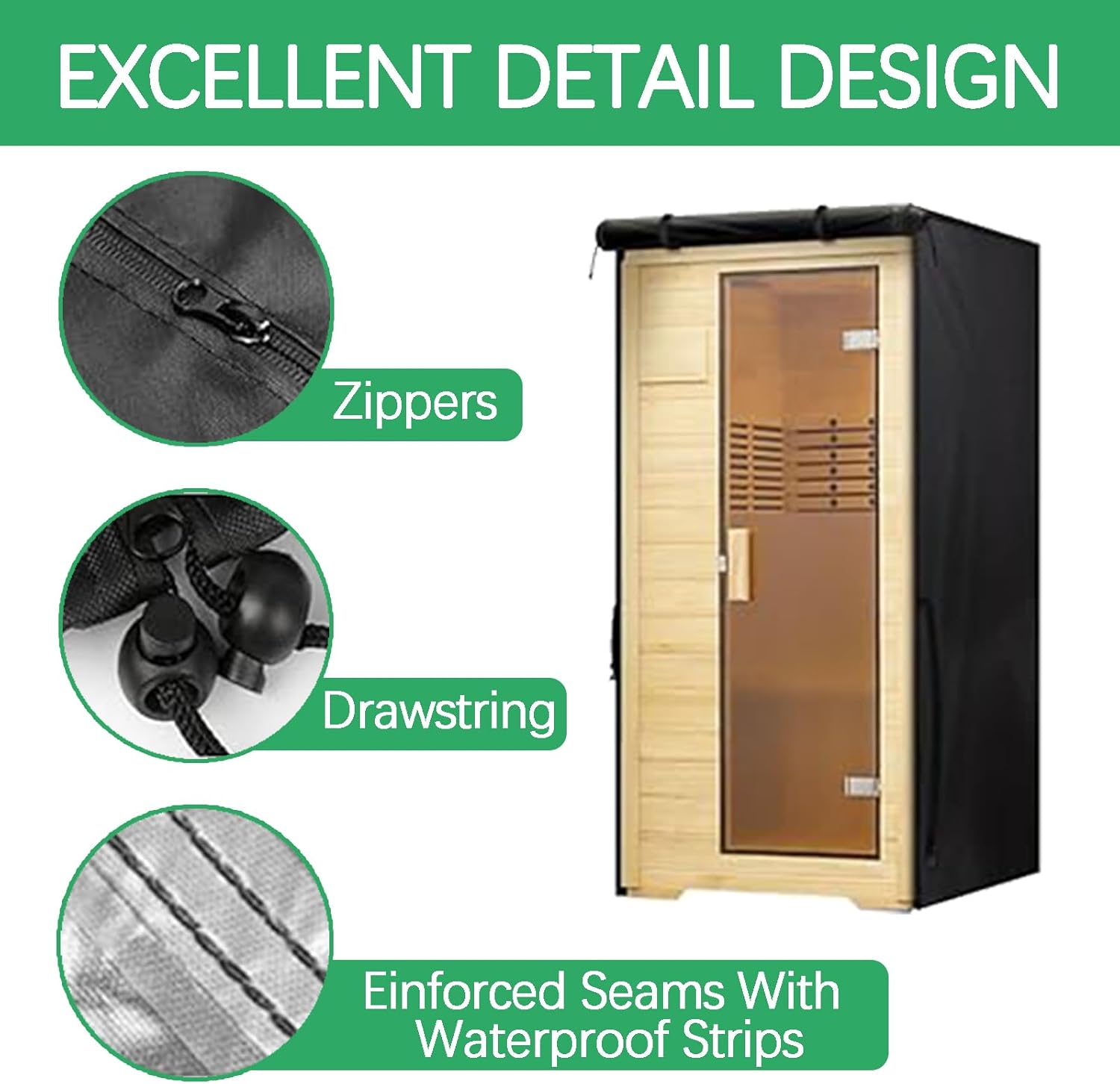 OUTDOOR/INDOOR SAUNA COVEROur is committed to keeping your furniture clean and beautiful, ensuring it remains pristine for years to come.Features:·All-Weather Protection: This outdoor sauna cover is designed to provide robust protection against rain, wind, dust, and dirt,that your sauna remains in pristine condition when not in use.·Convenient Zipper Design: Featuring two sturdy zippers on the front, this sauna cover allows for easy application and removal, making it simple to protect your sauna whenever necessary. (only cover)Specifications:Material:Oxford clothSize:·28in Sauna Cover (28in L x 33in W x 58.5in H)·32.6in Sauna Cover (32.6in L x 34.5in W x 67in H)·35.8in Sauna Cover (35.8in L x 28.5in W x 60.5in H)·38in Sauna Cover (38in L x 43in W x 76in H)·39.8in Sauna Cover (39.8in L x 37.4in W x 72.8in H)·45in Sauna Cover (45in L x 40in W x 80in H)·47.6in Sauna Cover (47.6in L x44.9in W x 73.6in H)·48in Sauna Cover (48in L x 48in W x 76in H)·48.8in Sauna Cover (48.8in L x 42.5in W x 74.8in H)·72in Sauna Cover (72in L x48in W x 76in H)With multiple size options available to accommodate different models of saunas, it ensures a fit and meets individual preferences.Color:Black,Grey,Silver